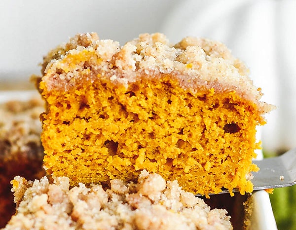 6. Pour the batter into the prepared baking dish, then scatter the streusel over top of the batter so that it is covered evenly.