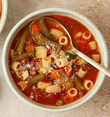 Combine the first 13 ingredients in a 5- or 6-qt. slow cooker. Cook, covered, on low 6-8 hours or until vegetables are tender. Stir in beans, zucchini and pasta. Cook, covered, on high about 30 minutes longer or until pasta is tender. Discard bay leaves. If desired, top with cheese.